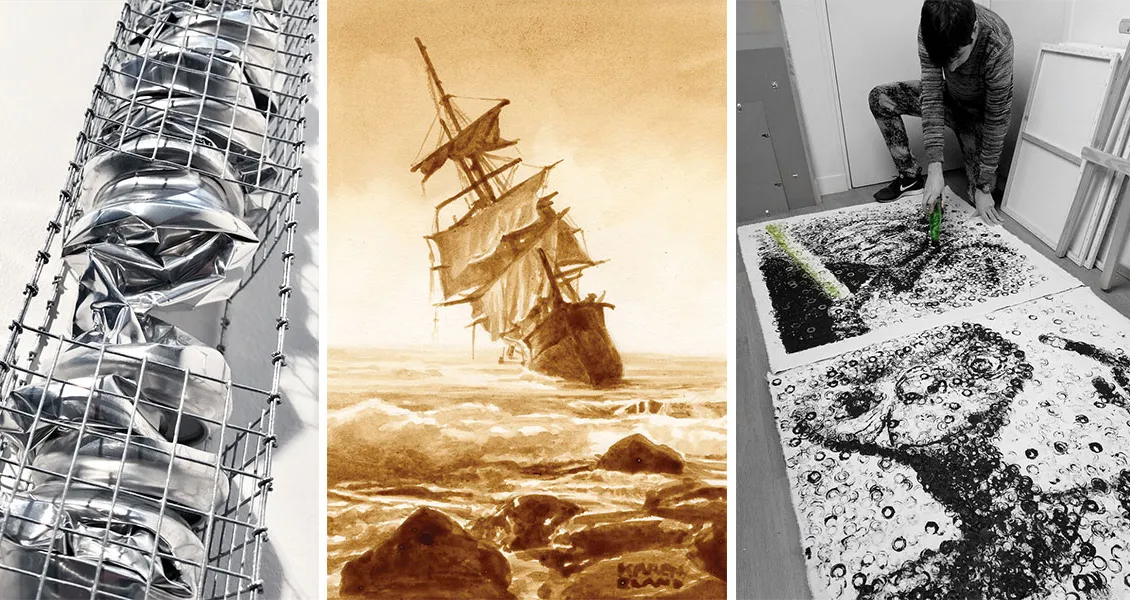 Disse kunstnerne tar ølkunsten til et helt nytt nivå. De bruker selve ølet til å male med boksflaskene og korkene – alt mulig – for å lage sine kreasjoner som spenner fra realistiske til abstrakte som hver bringer sin egen smak til den kunstneriske prosessen. Og akkurat som håndverksølindustrien er den ikke bare lokal, den er global. Disse kunstnerne kommer fra et bredt spekter av steder og fant felles grunnlag i denne uventede materielle inspirasjonen.