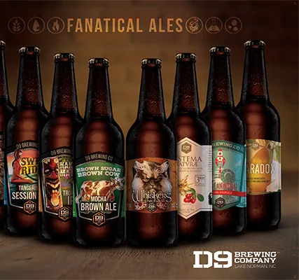 OM D9 BRYGGING D9 Brewing Company i Lake Norman N.C. ble startet av to ingeniører og en lege med et oppdrag å inspirere og støtte fellesskapet gjennom å lage spennende og originale øl. Siden oppstarten i slutten av 2014 har vi investert i vitenskapelig utforskning av den naturlige verden for å produsere den høyeste kvaliteten og utvilsomt originale laget øl. Med lanseringen av Taming Wild Beasts® i 2017 streber D9 Brewing etter å bli den ledende produsenten av viltgjæret øl i det sørøstlige USA. D9 Brewing ble tildelt en gullmedalje for sin Systema Naturae 2nd Edition – Scuppernong