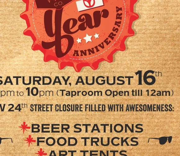 De Wynwood Brewing Company feirer ett år siden de åpnet dørene som City of Miamis første produksjonsmikrobryggeri, og Brignonis ønsker å feire med hele Sør-Florida håndverksølsamfunn. Festlighetene vil være lørdag 16. august med start kl 12.00. på 565 NW 24th Street med gaten stengt mellom NW 5th og 6th Avenue. Under arrangementet vil Wynwood Brewing ha sin første flaskeutgivelse – Spedbarnet – for å markere jubileet og mer enn tjuesju brygg produsert det siste året av bryggeriet, samt gjestetapper fra Funky Buddha bryggeri På grunn av South Brewing Proof Brewing Company Sigarbybrygging og MIABrewing . WBCo. gatefest blir 12.00. til 22.00. Tap-rommet vil være åpent fra middag til midnatt. Billetter vil være tilgjengelig for salg for $ 5 per skjenking.